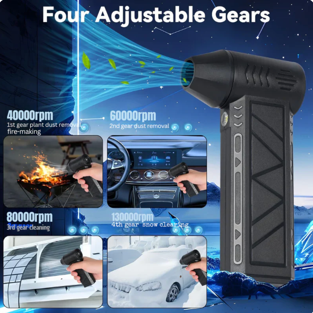The Winter Pro is more than just a snow-clearing tool. Thanks to its powerful turbo fan and four adjustable wind speeds, it can also be used for tasks like blowing away dust, dirt, and debris from your car, driveway, or outdoor surfaces. The integrated LED light ensures you never miss a spot, and its compact design makes it easy to handle for everything from drying your pet after a wash to lighting up your barbecue area. It is a versatile tool that simplifies everyday clean-up tasks.